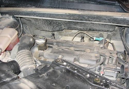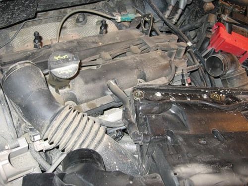 - Снимаем верхнюю защитную крышку с двигателя. Предварительно необходимо отсоединить патрубки воздушной системы.