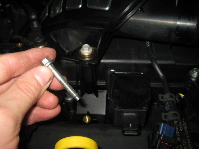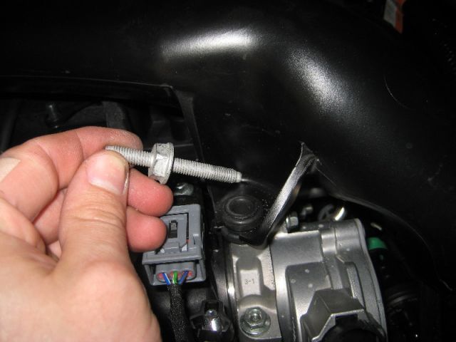 - При помощи ключа на 13 необходимо открутить болт, который удерживает воздуховод.