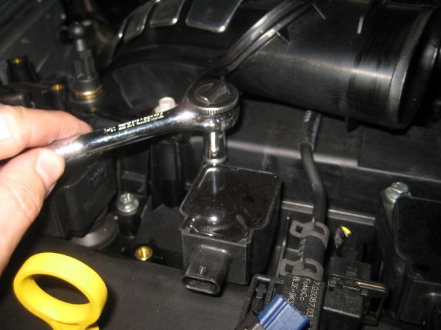 - При помощи головки на 8 откручиваем крепления катушек зажигания.