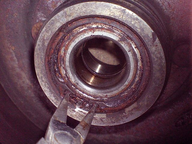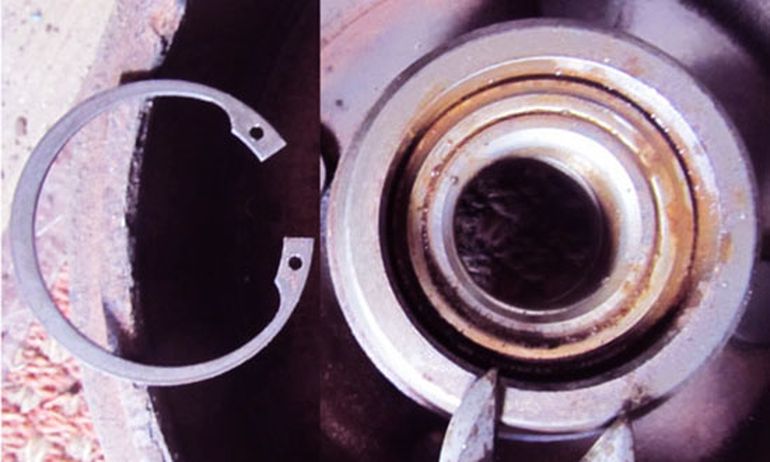 - Проводим демонтаж стопорного кольца подшипника.