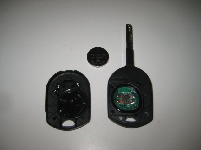 Разделить брелок. Извлечь старую батарейку. Разобранный ключ. - Ставим новую батарейку.