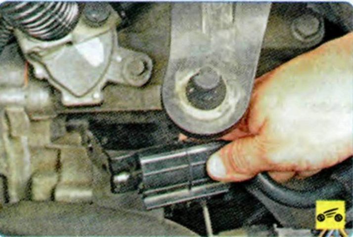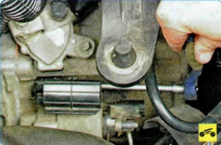 Отверните гайку крепления верхнего кронштейна жгута проводов… …и гайку крепления нижнего кронштейна… …затем снимите кронштейн. - Выворачиваем болты крепления стартера.