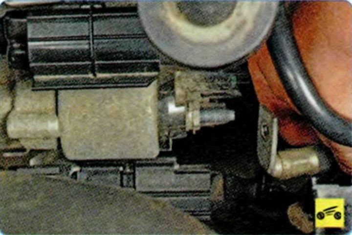 Выведите из держателя жгут проводов в гофрированной оболочке и отведите его в сторону. - Отсоединить разъем от тягового реле.
