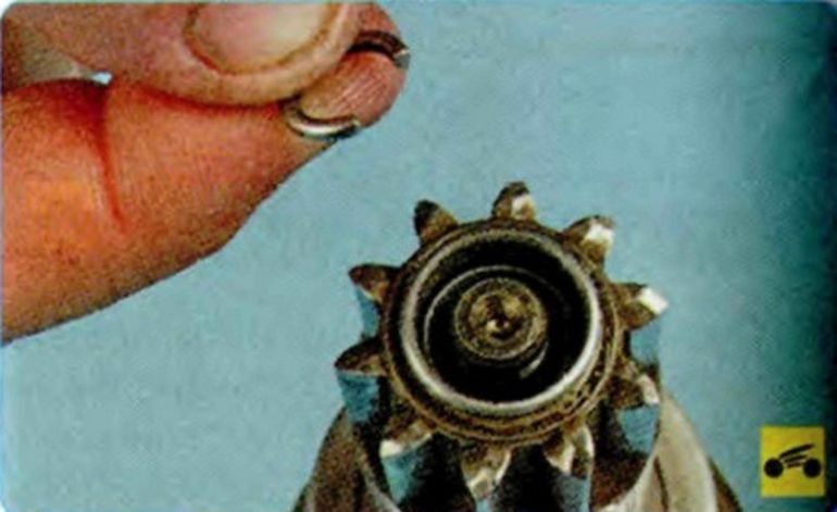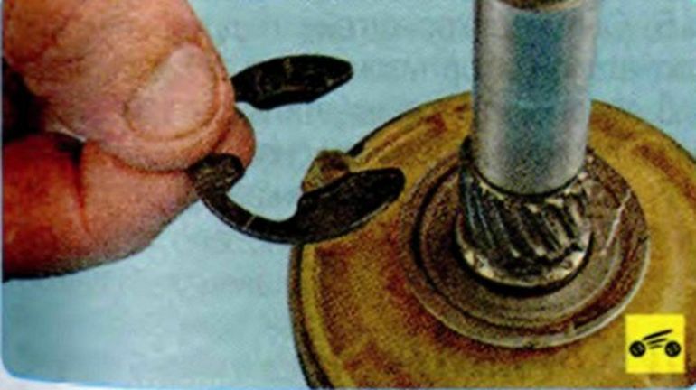 Снимите с осей водила три шестерни-сателлита. - Снимаем кольца — стопорное и дистанционное, как на картинке.