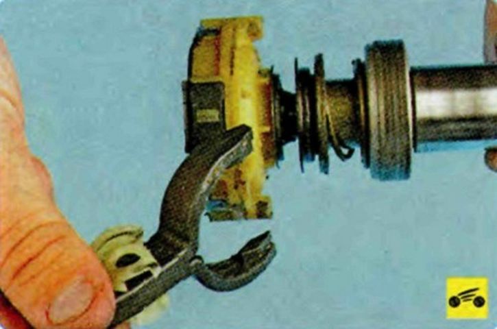 Снимите опору рычага привода. - Вынимаем рычаг, который плотно сидит на муфте. Это следует делать аккуратно.
