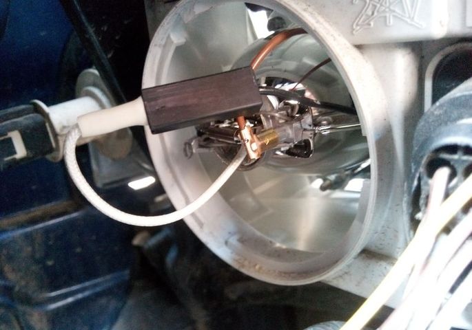 Откручиваем защитную крышку. - Вытаскиваем провод с разъема лампы.