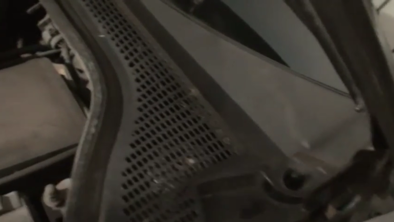 Снимаем дворники. Отщёлкиваем крепление дворников. - Теперь нужно снять накладку под лобовым стеклом, аккуратно, чтобы не повредить крепления, которые уходят в паз под стеклом.
