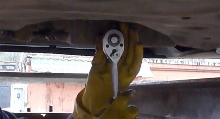 - Ставим автомобиль на подъемник или яму, а также даем остыть мотору.